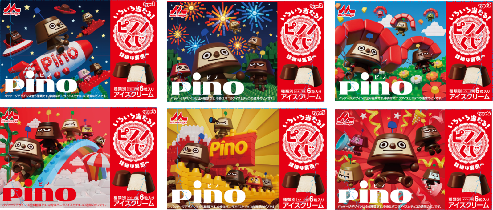 同キャンペーンでは、ご購入いただいた「ピノノくじ」限定パッケージのトレー下に印刷された二次元コードをスマートフォンで読み込むことで、自分だけのオリジナルキャラクター「ピノキャラ」を生成できます。さらに、そのキャラクターで参加できる抽選会「ピノノくじ」では、さまざまなオリジナルグッズが当たるチャンスをご用意しており、当選発表は毎週金曜日に行います。また、抽選会を待つ間は、自分で生成した「ピノキャラ」たちが集まる仮想空間「ピノタウン」で遊ぶことも可能です。なお、「ピノノくじ」限定パッケージ(全6種)は11月上旬から順次切り替えを行い、全国にて期間限定で発売します。