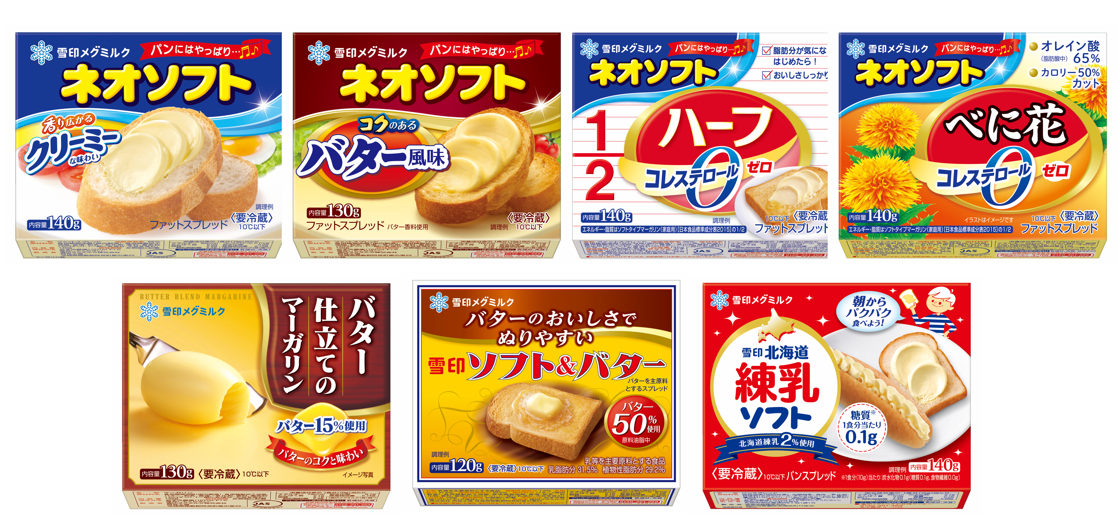 (130g) 「雪印ソフト&バター」(120g)「雪印北海道練乳 ソフト」(140g)