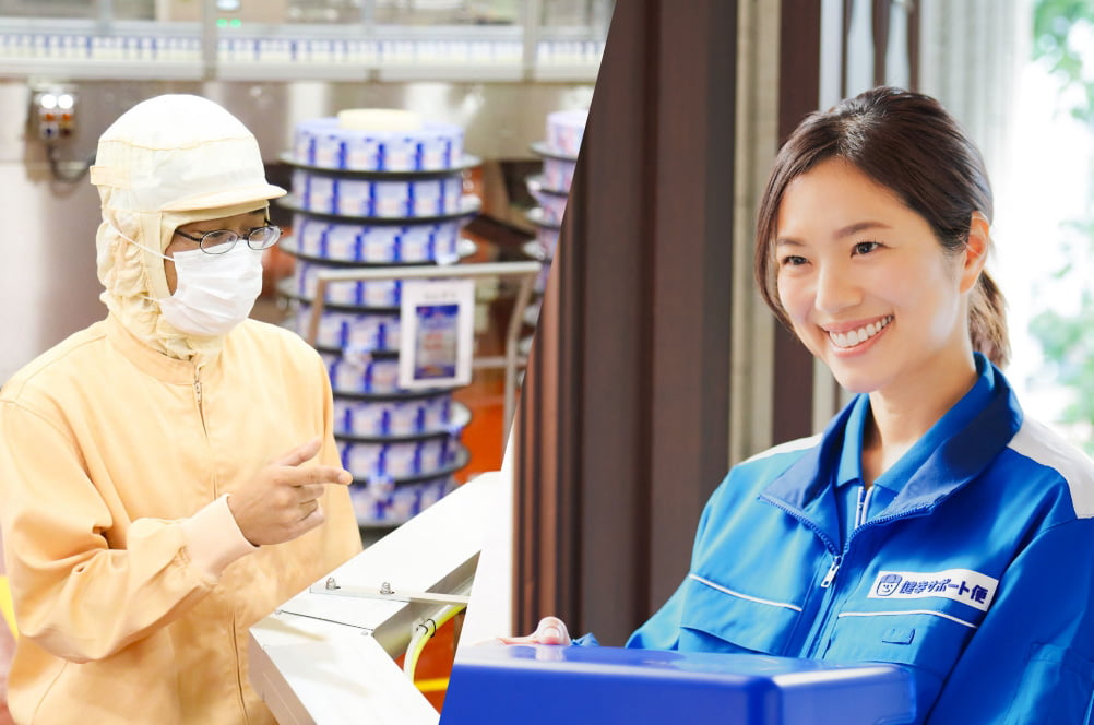フレッシュで安心安全な商品をお届けするために、製造からお届けまで、品質管理や衛生面を徹底しています。大半の商品が工場を出荷して1~2日以内にフレッシュさを保つチルド状態で届けられるため、鮮度が高い状態で飲むことができます。