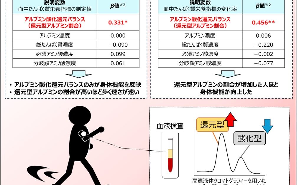 血中アルブミン酸化還元バランスが中高年齢者における身体機能の変化を反映する有用な指標となる可能性を確認 | ニュースリリース | 森永乳業株式会社